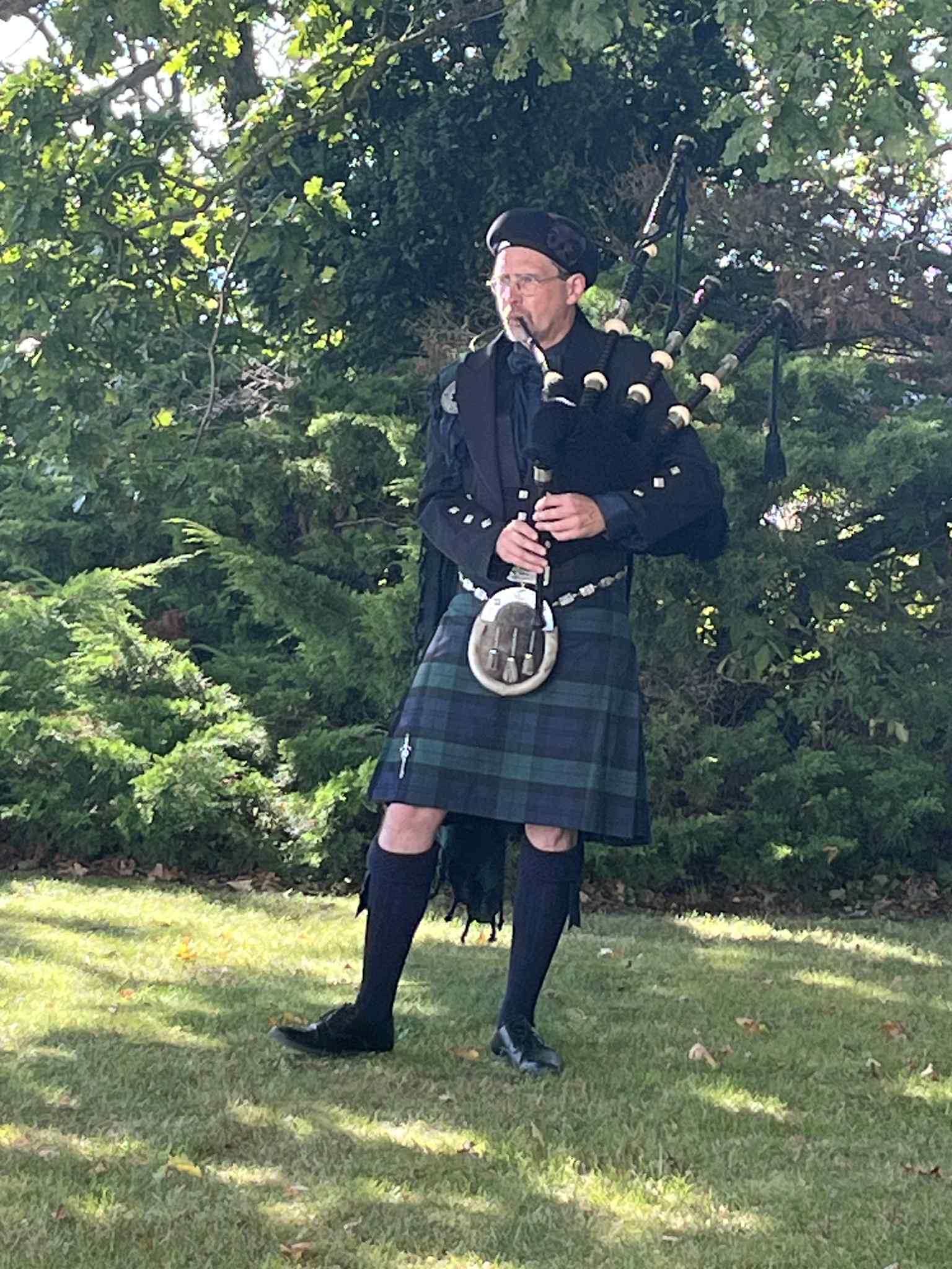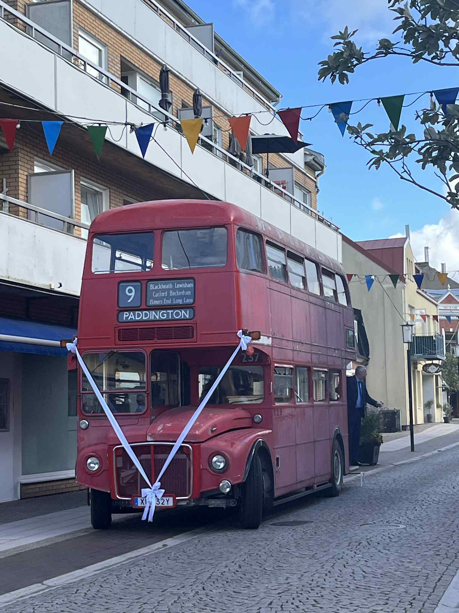 The wedding was beautifully planned. A big old London double-decker bus showed up and took us to the church. When we arrived, we were met by bagpipe music played by a handsome man in a kilt. Of course, for you who know that John is from Scotland, there were a lot from his side wearing kilts. The ceremony was absolutely beautiful, but that's their private moment, so not for me to speak about.